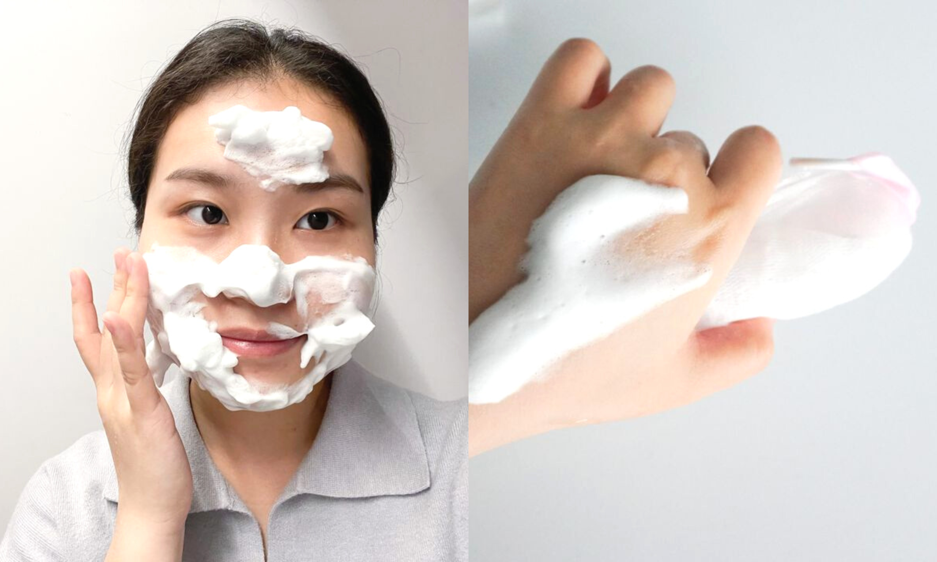 將搓出的濃密泡泡均勻塗抹在臉上,泡泡觸感很有彈性,不容易消泡