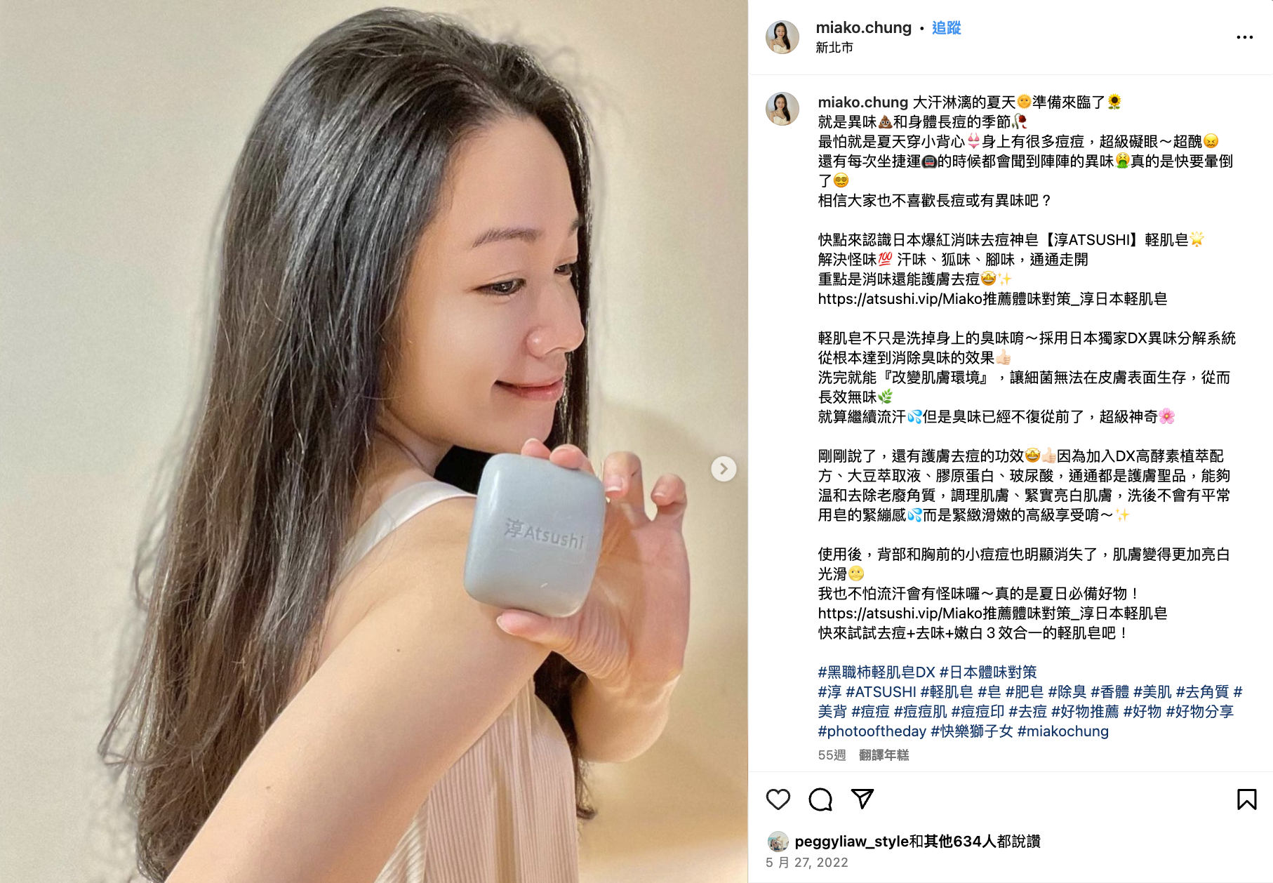 這個軽肌皂不只解決夏天惱人汗臭味,也幫我解決背痘