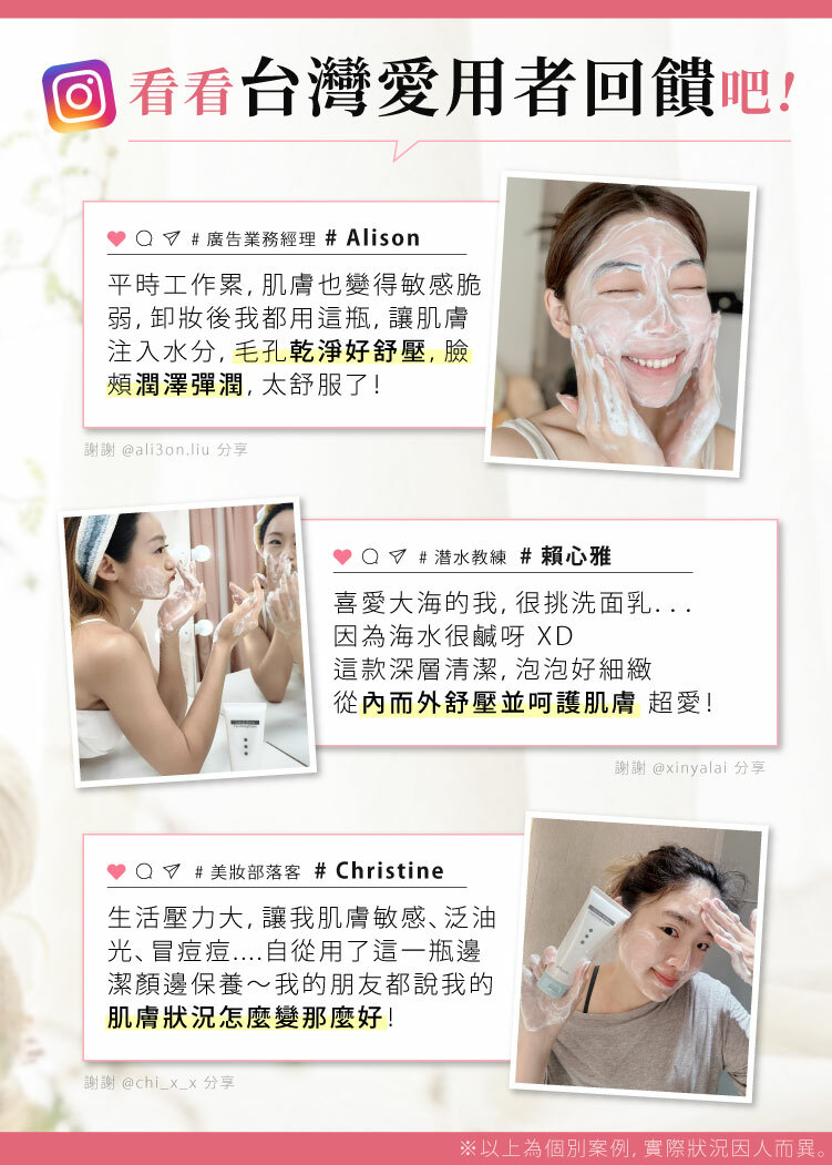 取用適量於手心(約1元硬幣大小),添加少許溫水搓揉起泡,輕柔按摩全臉後沖淨。 |