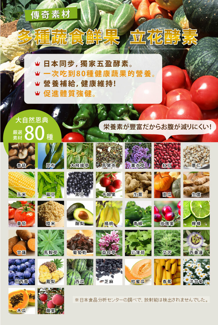 5. 多達八十種酵素萃取,立花酵素、青梅酵素精華…等等。