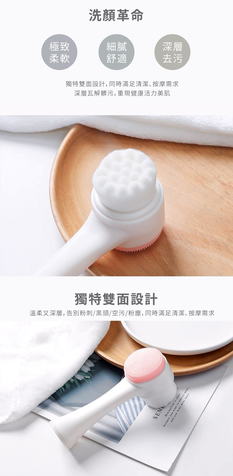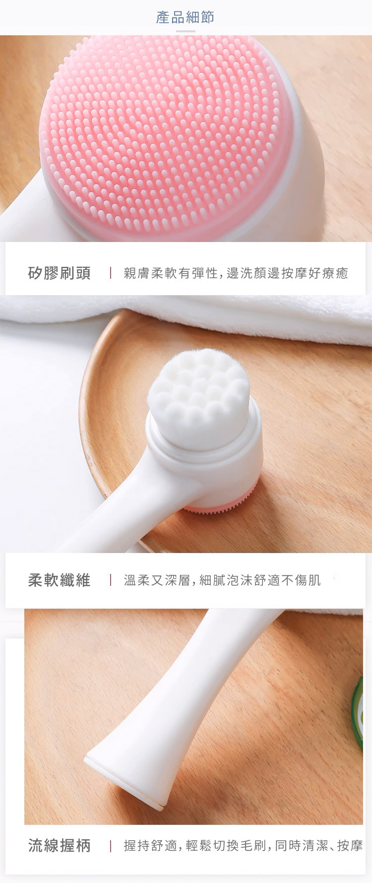 | 產品特色 | 把洗臉變成一種享受,深層瓦解髒污,重現健康活力美肌!原來是卸妝卸得不夠乾淨,所以才會肌膚差!獨特雙面設計,同時滿足清潔、按摩需求!極致柔軟萬纖維刷毛,打造細膩泡沫,舒適不傷肌,深入毛孔掃除粉刺/黑頭/空污/粉塵,矽膠親膚刷頭,邊洗顏邊提拉,按摩小顏好療癒,體驗洗顏革命軟毛洗臉刷的魅力,打造潔淨心肌力! |