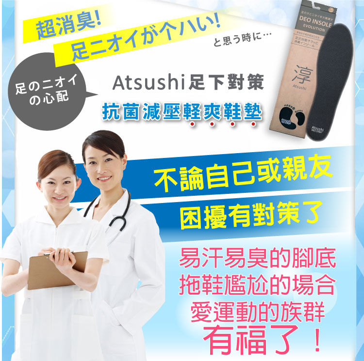 品牌:淳 Atsushi 品名:足下對策軽爽鞋墊 尺寸:26cm-29cm 材質:鞋墊 100% PU,面料 100% 聚酯纖維 |