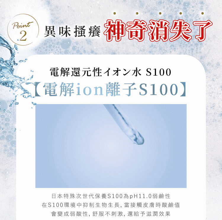 3. 日本特殊【電解ion水S-100】厚生省認證制菌力,保持弱酸環境,提升保水能力
