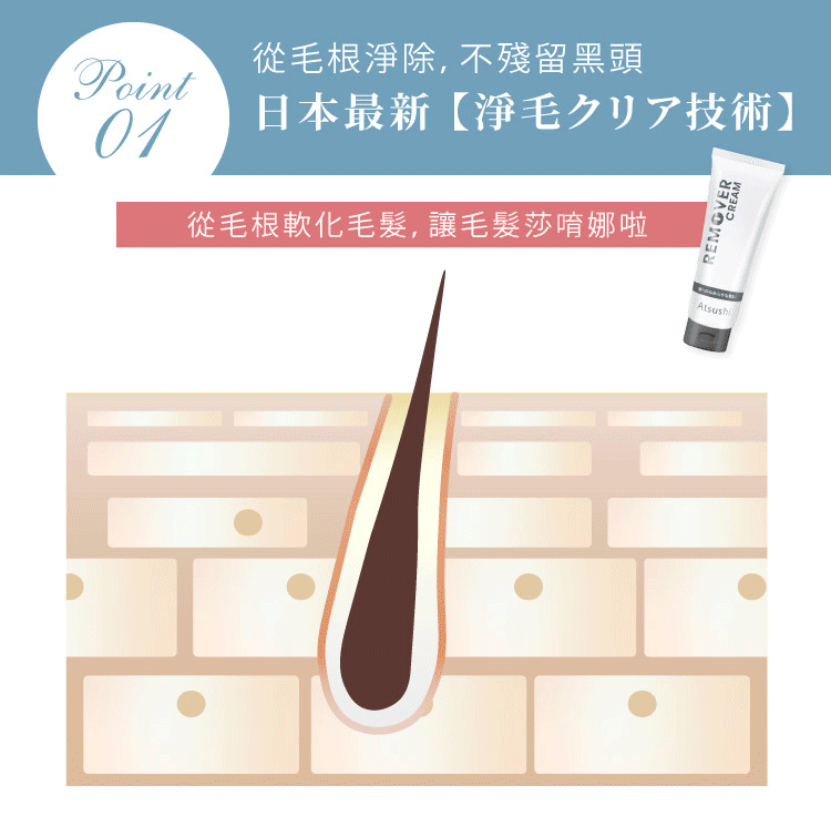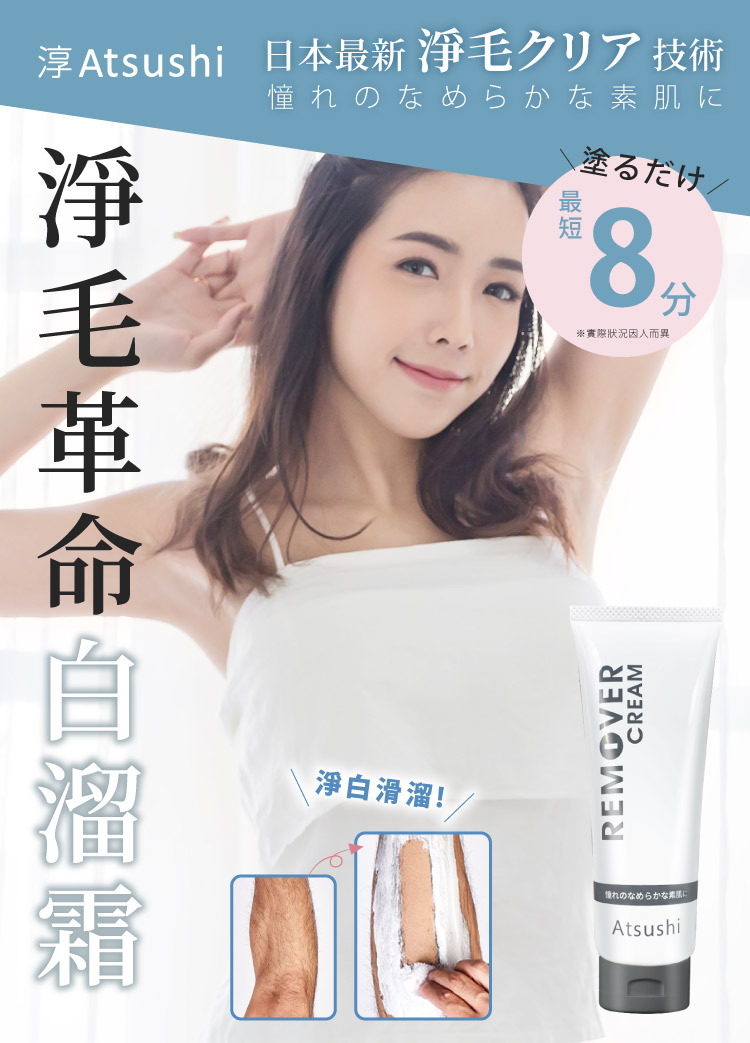 日本最新【淨毛クリア技術】,從毛根淨除,不殘留黑頭,肌膚淨除拋光,8分鐘還原白溜肌!淳Atsushi開發獨家技術:高脫毛、0刺鼻、低刺激,日本厚生省認證安心、低敏,93%使用者滿意!採用日本溫和植萃配方,潤、白、彈、制、護,5効合一美肌UP,更加入日本野大豆籽精華,抑制粗毛,新生毛髮也細軟,0感根除『毛』煩,淨白滑溜肌再現! |