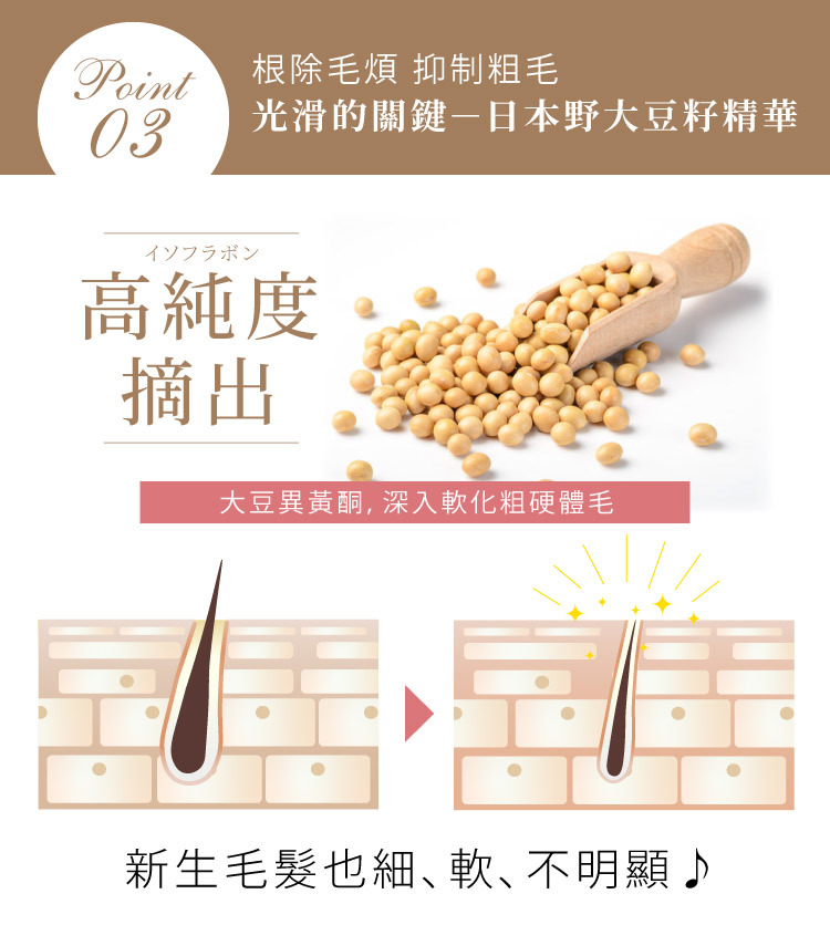 4. 日本野大豆籽精華,抑制粗毛,新生毛髮也細軟
