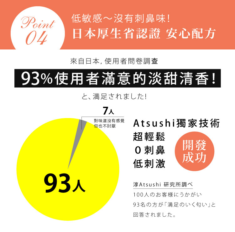 5. 淳Atsushi開發獨家技術:高脫毛、0刺鼻、低刺激
