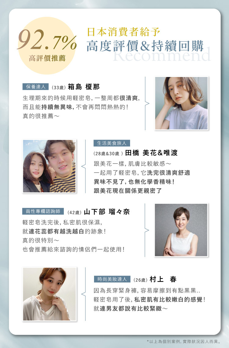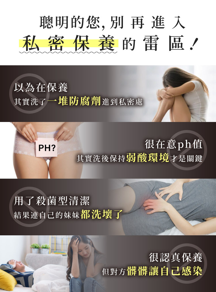 日本私密保養新觀念,呵護自己,關係更升級!日本3大獨家密技潔淨同時保養,嫩白、緊緻、抗老、長效清爽無異味,無添加不敏感,高制菌力讓每天都舒適。 |