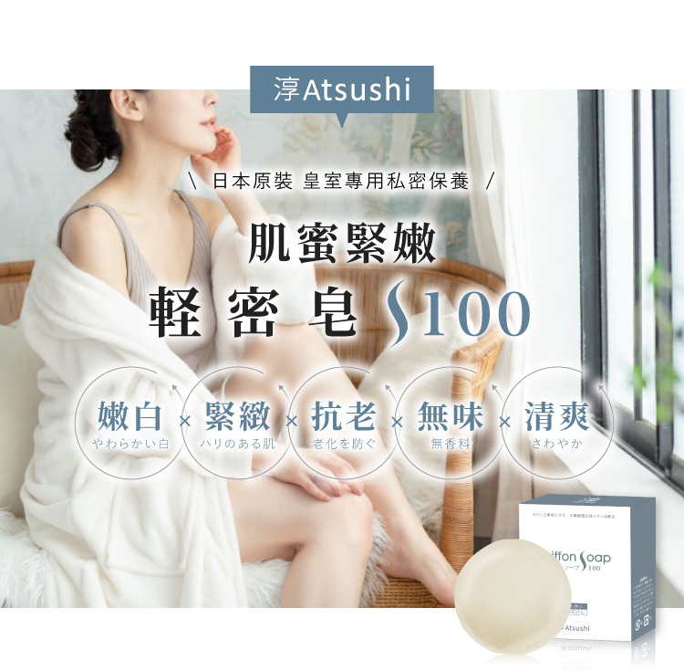 全新升級!解除異味新對策 日本消味x去荳x嫩白神皂,日本運用最新DX分解系統將智能緩釋因子保覆住,附著皮膚上,因應身體出汗狀況緩慢釋放消味因子,與異味分子結合,長時間消除異味。軽肌皂成分萃取日本和歌山縣的柿子,新添加了銀精華、玉米澱粉,其中的柿鞣酸對於肌膚有消臭、保護作用;而銀精華具有維持肌膚健康效果,能夠緩解肌膚煩惱。再加上紀州職人備長炭+丹波條山黑豆小分子萃取和Atsushi DX高酵素,能調理油脂去除老廢角質,改善荳油肌及頭皮油臭,達到消味兼保養的功效。 |