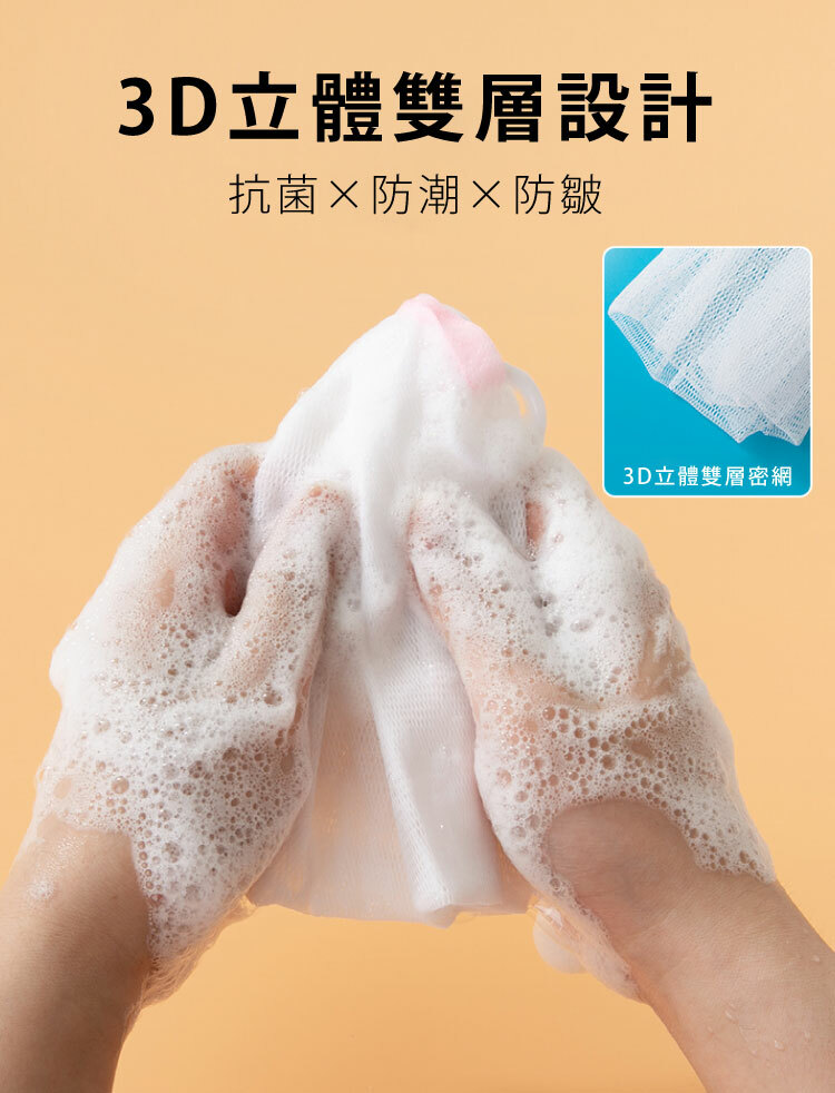 | 產品規格 | 品牌:住友良品 品名:日系極細緻雙層起泡網 成分:PE材質 尺寸:23.5cm*18cm ※ 因以手工平放測量尺寸,可能產生誤差值±1-3cm,皆屬合理範圍。 |